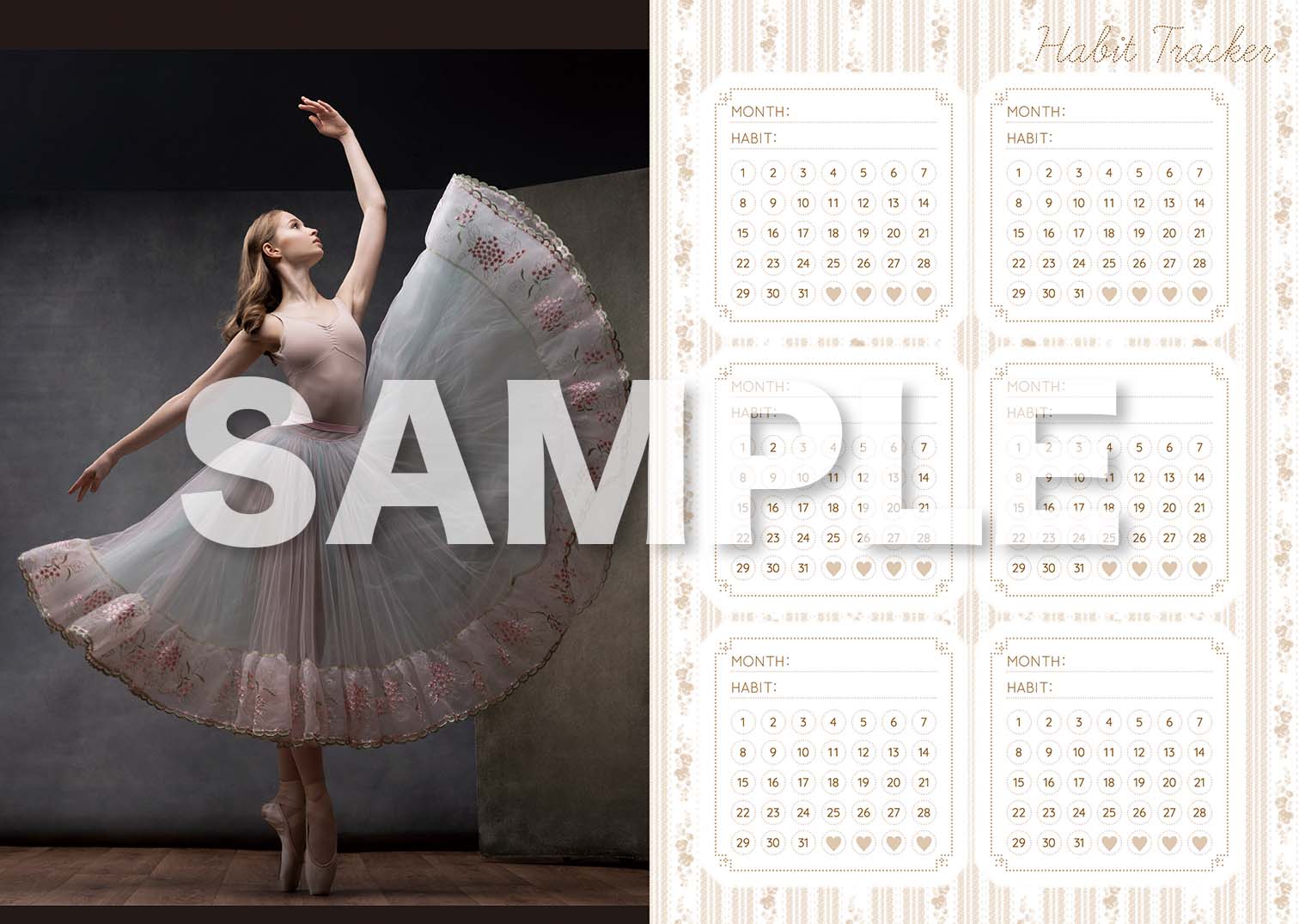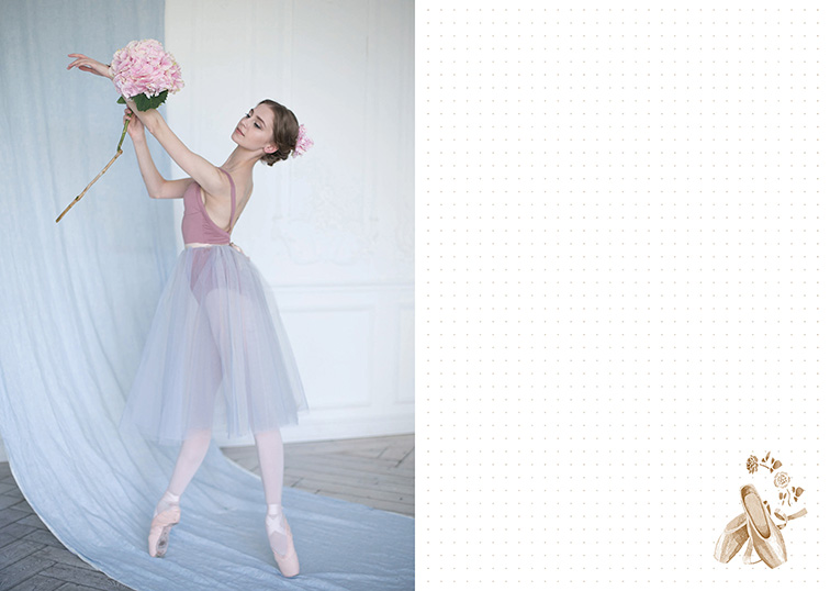 うっとりするようなラインのダンサー。 バレエって素敵!と感じられるような写真をセレクトしています。 手帳とともに、バレエのすばしらさを身近に感じてみてください。
